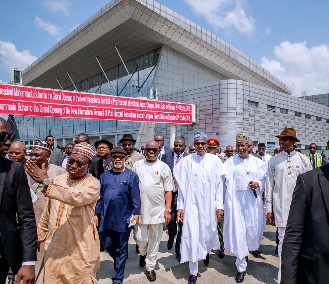 President Buhari on Thursday 25 October, commissioned the new terminal building of the Port Harcourt International Airport, Omagwa, Rivers State. The President arrived the airport at about 12:30pm.