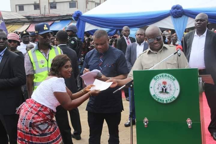 Highpoint of the occasion was the handing over of the bank drafts to the affected traders by the Rivers State Governor.