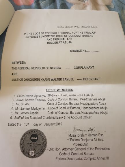 “We are aware that there are plans to arraign Justice Onnoghen before the Justice Danladi Yakubu Umar led-Code of Conduct Tribunal on Monday, January 14, 2019.