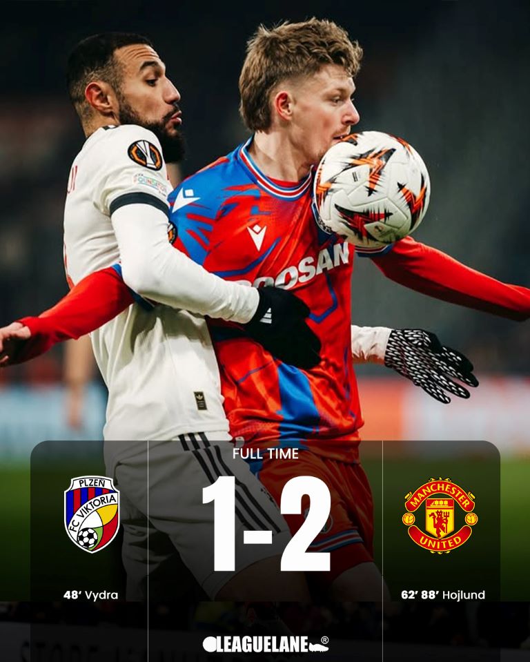 In a thrilling UEFA Europa League encounter on Thursday, Rasmus Hojlund came off the bench in the second half to score a brace for Manchester United, already a goal down, to seal a 2-1 victory over Viktoria Plzen of the Czech Republic. The win earned the Red Devils the vital three points it needs and positions it for likely automatic qualification to the Round of 16