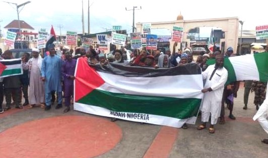 They carried placards, banners, and Palestinian flags. Among the inscriptions were: “Nigeria unites for Palestine”, “No more massacre in Palestine”, and “Humanity must rise against Zionist Movement.”