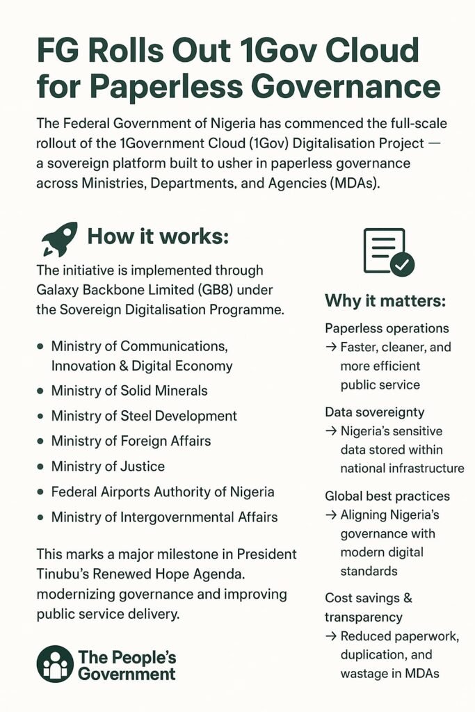 The Federal Government has started the full rollout of its 1Government Cloud (1Gov) Digitalisation Project, a sovereign platform that promises to end paper-based governance across ministries, departments, and agencies.