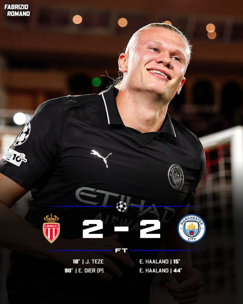 The draw means City now sit on four points from two matches, staying firmly in contention for a top knockout spot. For Monaco, this was their first point of the campaign, after losing their opening game.