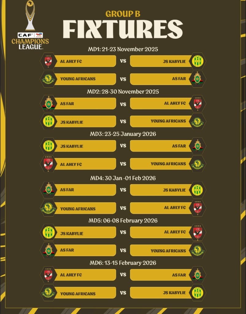 Egyptian giants Al Ahly, 12-time winners, were drawn in Group B alongside Tanzania’s Young Africans, Moroccan champions AS FAR, and Algeria’s two-time African champions JS Kabylie.