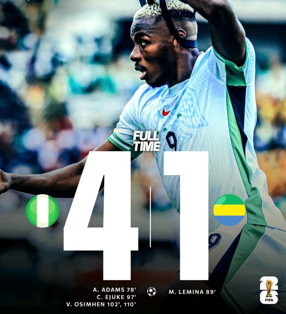 Nigeria walked into Rabat under pressure and walked out with renewed hope. The Super Eagles defeated Gabon 4–1 on Thursday night after a tense battle that dragged into extra time at Stade Mohammed V in Morocco.