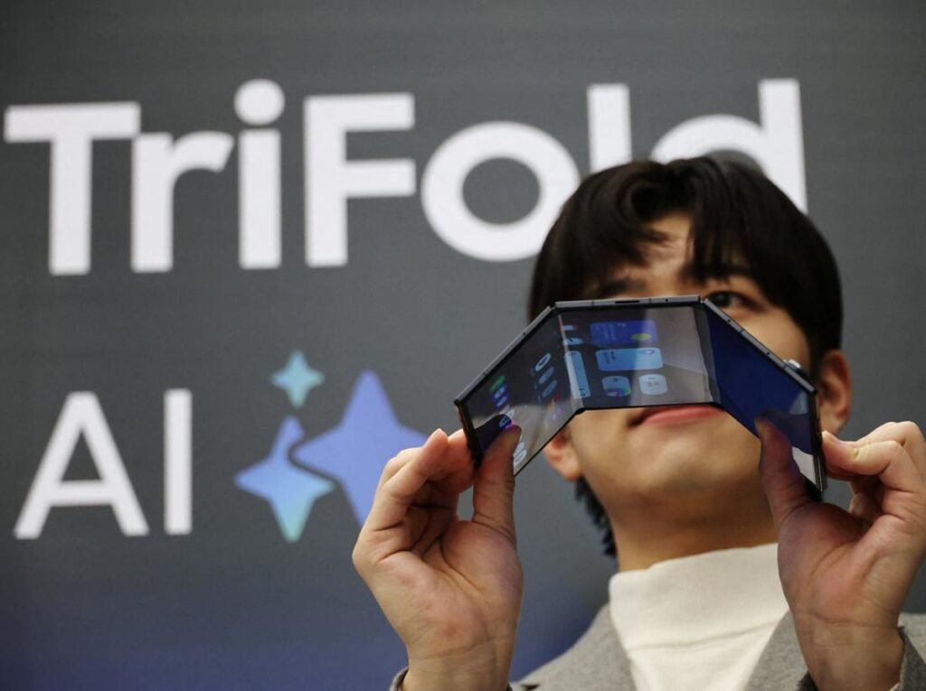 The Galaxy Z TriFold, priced at about 3.59 million won ($2,440), introduces a three-panel design that unfolds into a 10-inch display—roughly 25 percent larger than the Galaxy Z Fold 7.