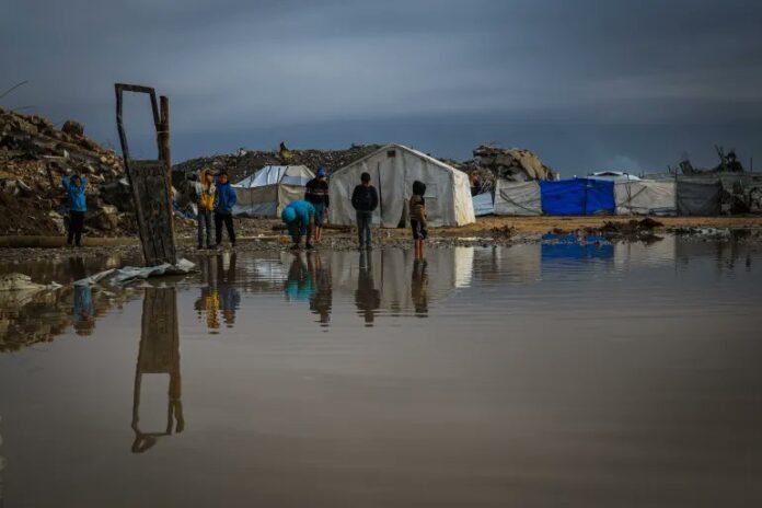 Aid group Oxfam said tents flooded with water left Palestinians “wading through sewage, mud and debris with no proper shelter.” The group blamed the crisis on “systematic obstruction of aid.”