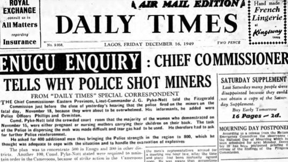 The killings occurred on November 1, 1949, when miners at the Iva Valley mine went on strike over unpaid wages and harsh working conditions under British colonial rule. Coal was a major source of energy and revenue for the colonial administration at the time.