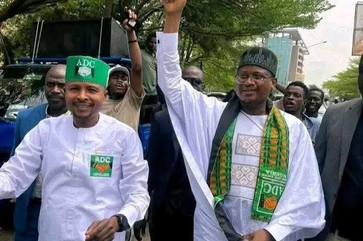 The leadership crisis within the African Democratic Congress (ADC) took another twist on Thursday, when estranged former Deputy Chairman, Nafiu Bala Gombe, led a protest to the Independent National Electoral Commission (INEC) headquarters.